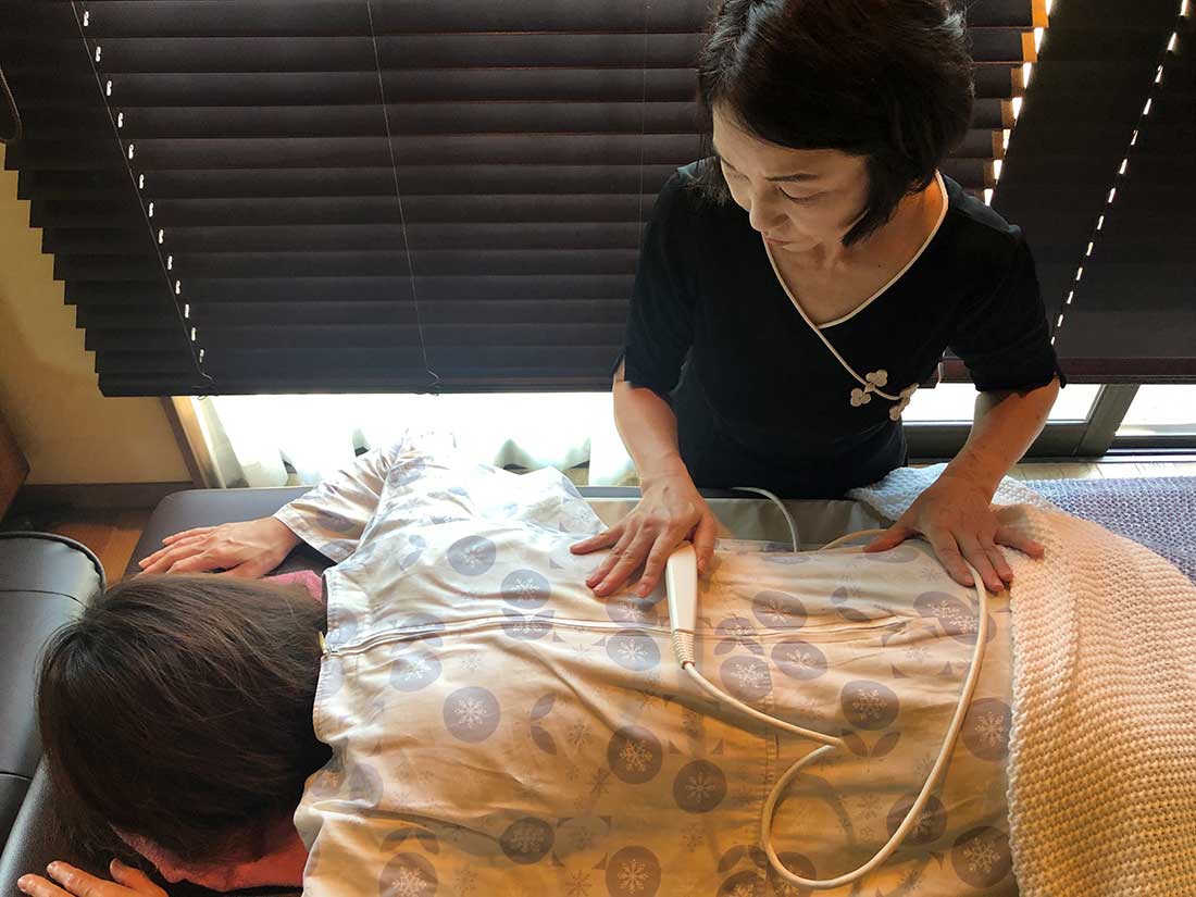 熱さがおさまるまで温熱をかけアチチ反応が和らいだ時に治療終了です。